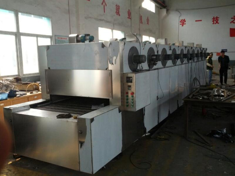 ??由于帶式干燥機是連續(xù)的對流帶式干燥機,并且工人會將產(chǎn)品放在金屬絲網(wǎng)或多孔板,同時輸送機會把物料放入干燥室中。接下來,干燥室會對物料進行連續(xù)的干燥。并且在干燥室中,循環(huán)風(fēng)扇通過垂直的方式將熱空氣吹過產(chǎn)品。在此過程中,循環(huán)流的空氣在每種產(chǎn)品流動之后通過集成到干燥機中的熱交換器進行重新加熱;并且干燥時產(chǎn)生的空氣會反復(fù)通過干燥室,直到干燥室的內(nèi)蒸氣含量達到標準時,空氣才會離開干燥機。